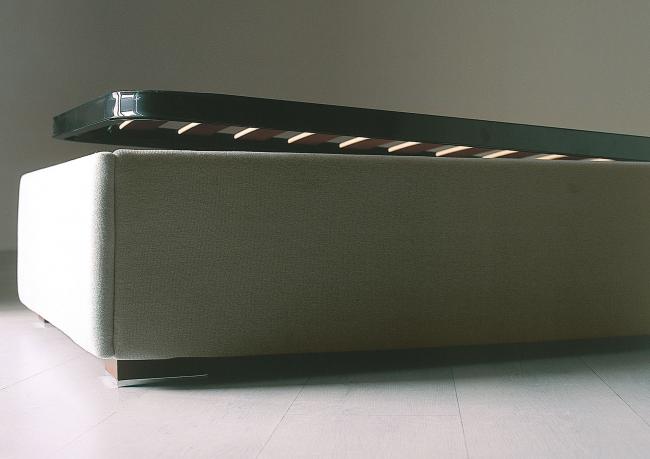 El Somier se realiza también con un contenedor que se puede abrir lateralmente o frontalmente, también con subida fácil. Como alternativa es posible insertar un cajón extraíble o un armario individual o doble en madera, acabado de muestra o bien revestido en tela.